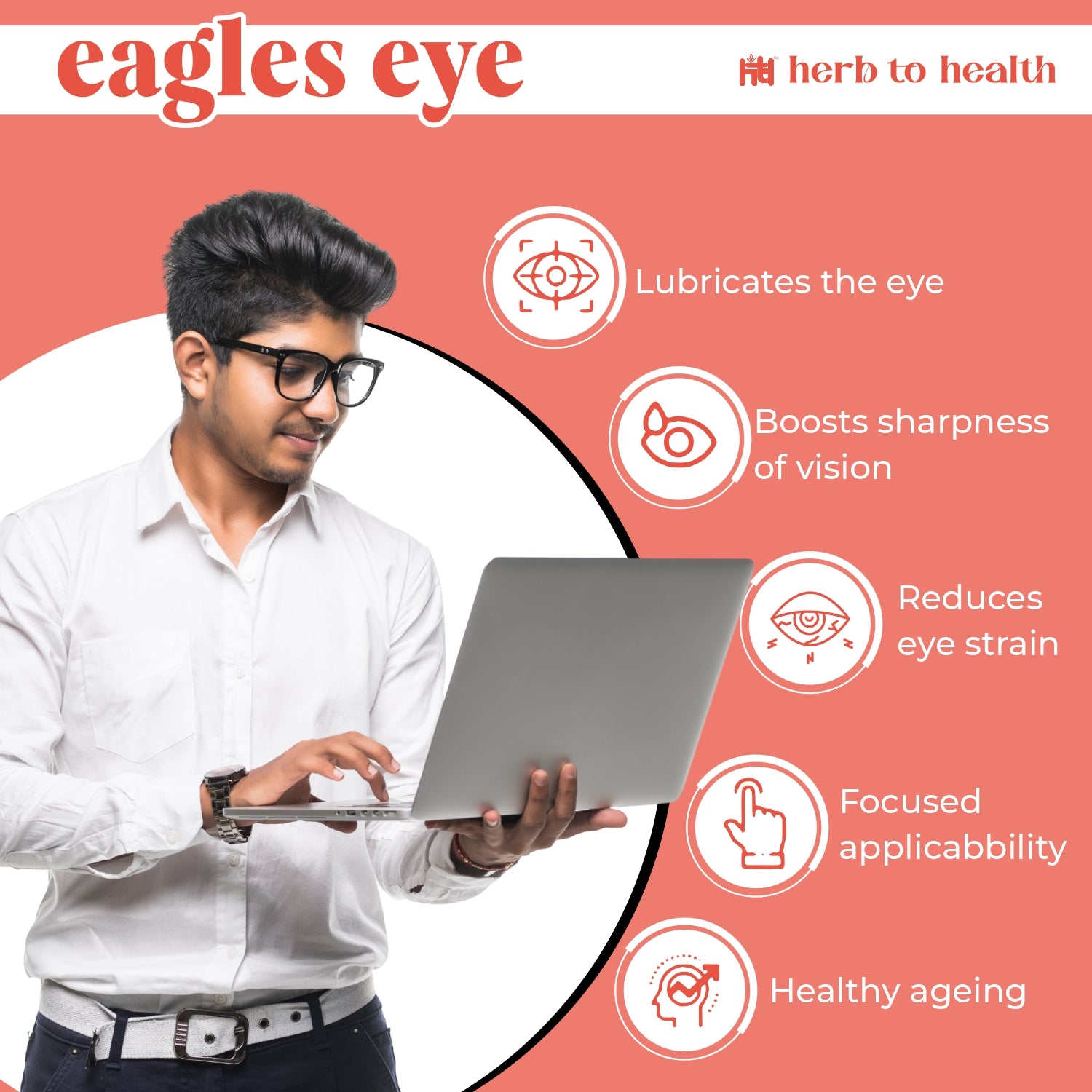 Eagle’s Eye is a herbal, Ayurvedic formulation that not only reduces digital eye fatigue but also supports long-term retinal health without synthetic additives.