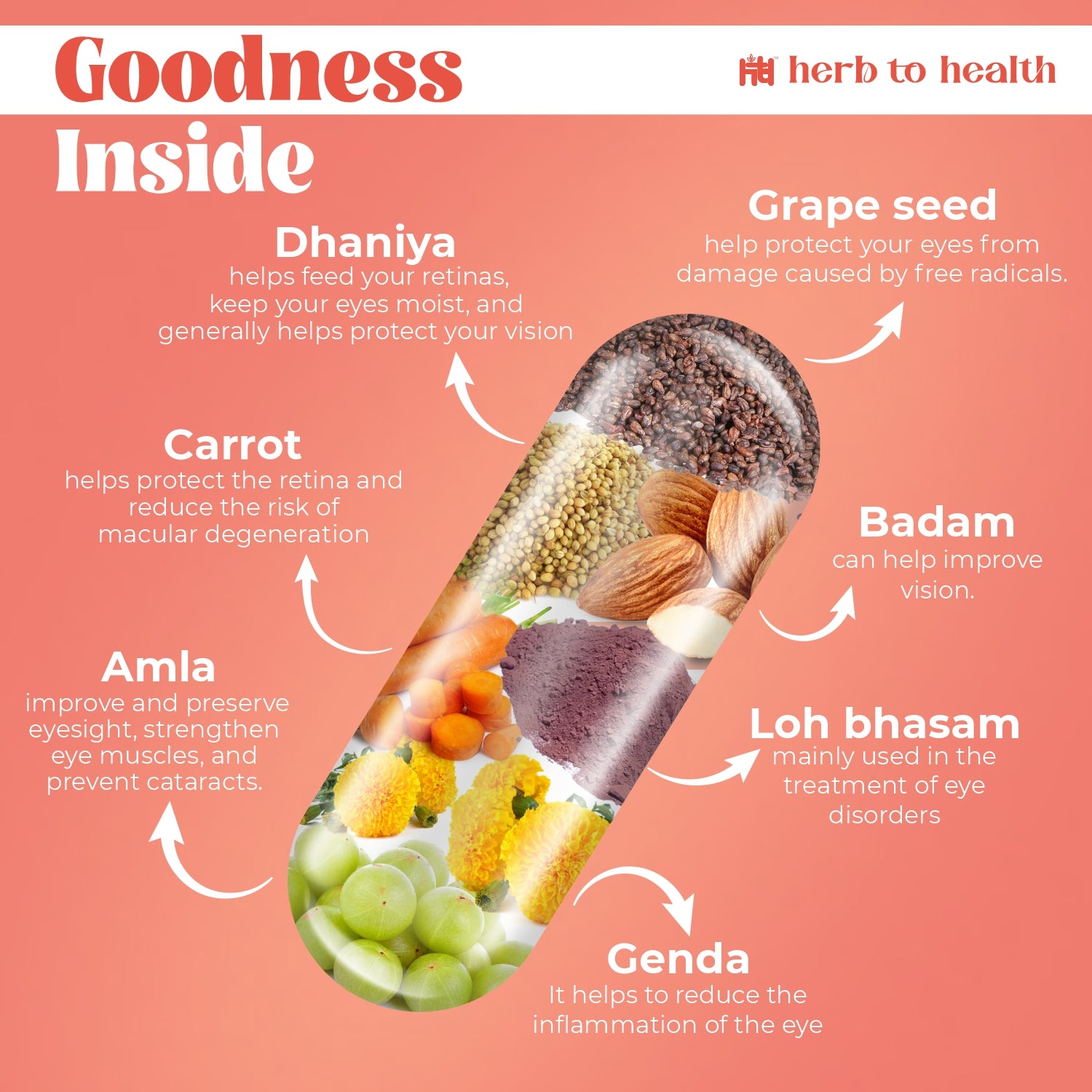 Ingredients like Carrot and Triphala are rich in beta-carotene and antioxidants that support low-light and night vision.
