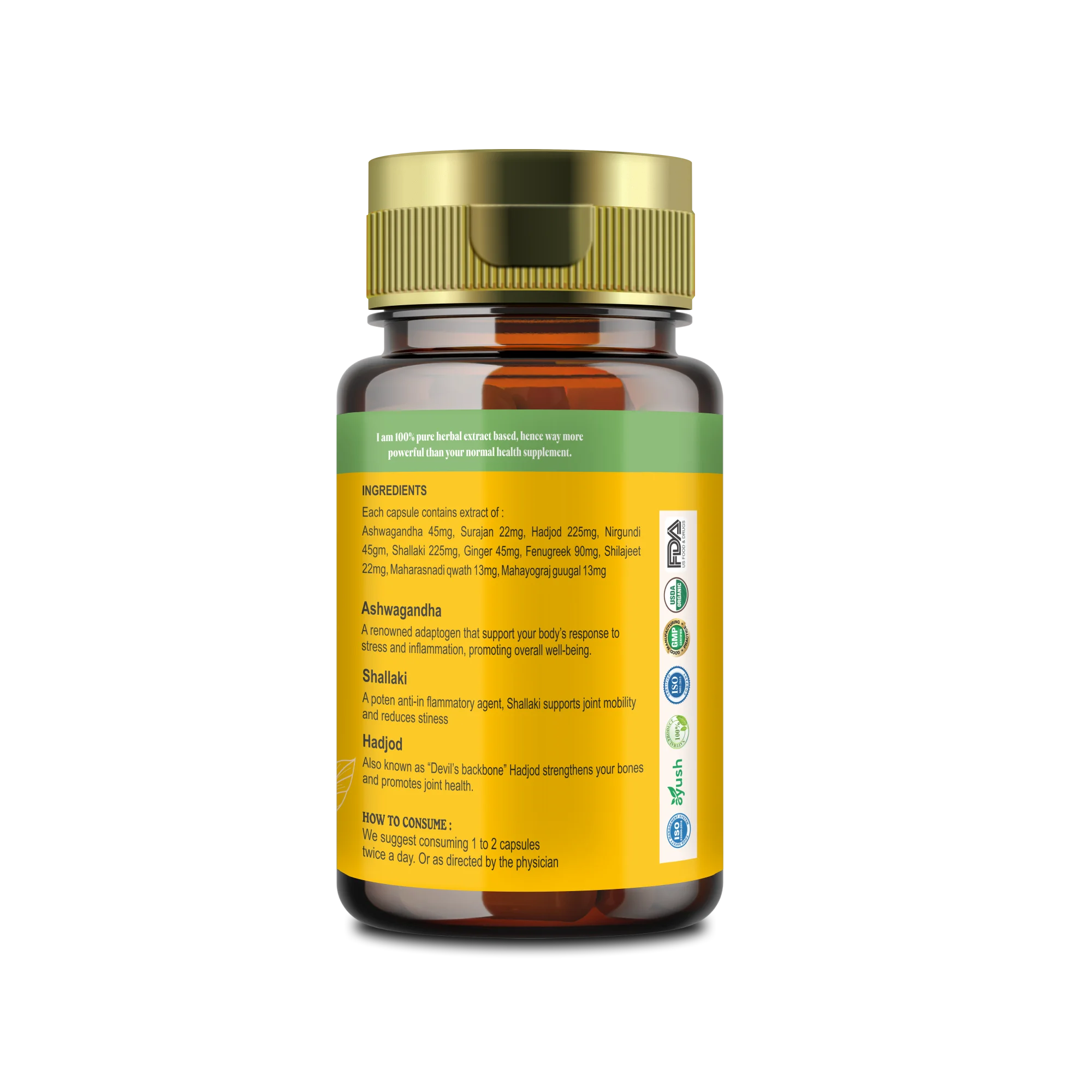 Ingredients like Hadjod and Guggul support bone strength and muscle stability, promoting healthier joint function.