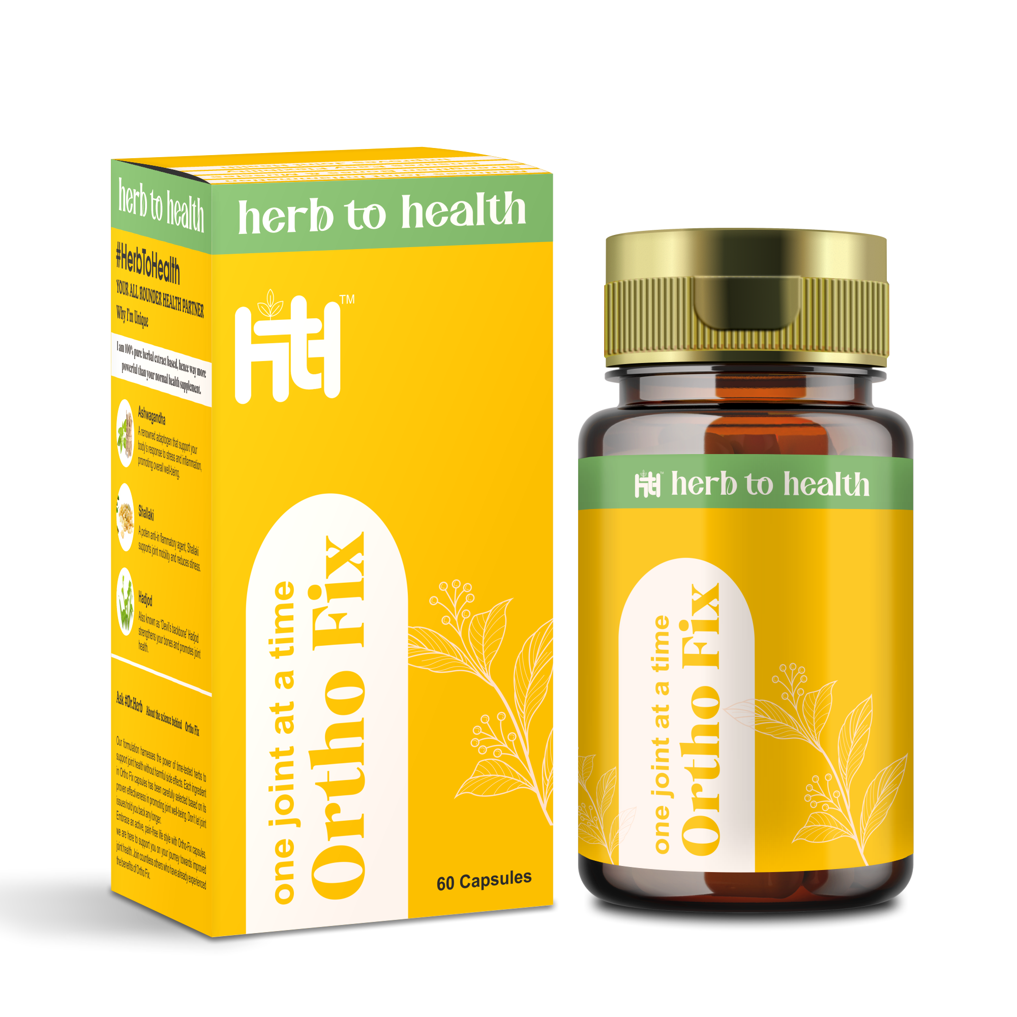 Ortho Fix contains Shallaki, Guggul, and Hadjod, which reduce inflammation, support cartilage repair, and improve flexibility for better joint movement.