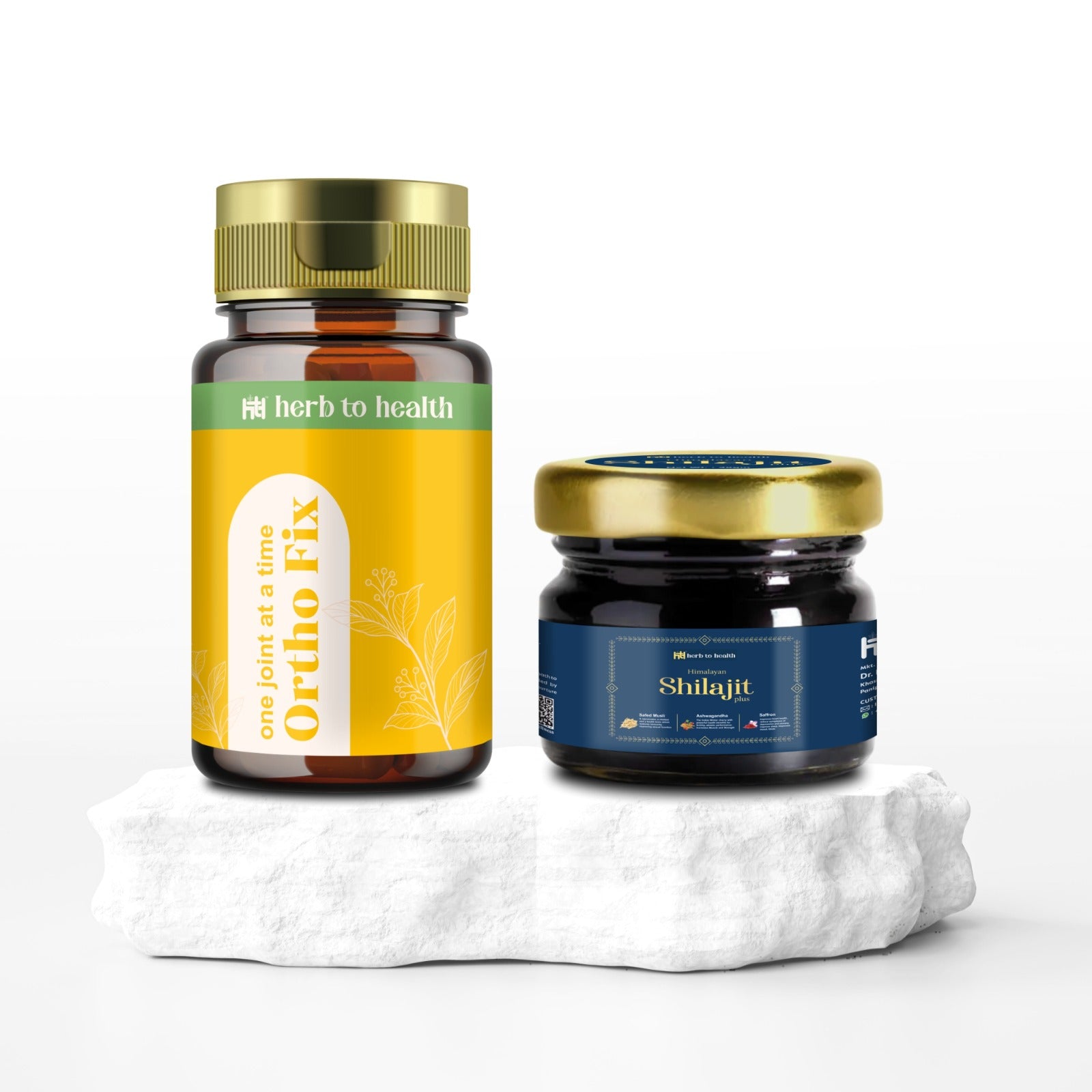This combo offers a dual-action Ayurvedic approach,natural pain relief with Ortho Fix and energy restoration with Shilajit Resin,formulated with quality and purity in mind.