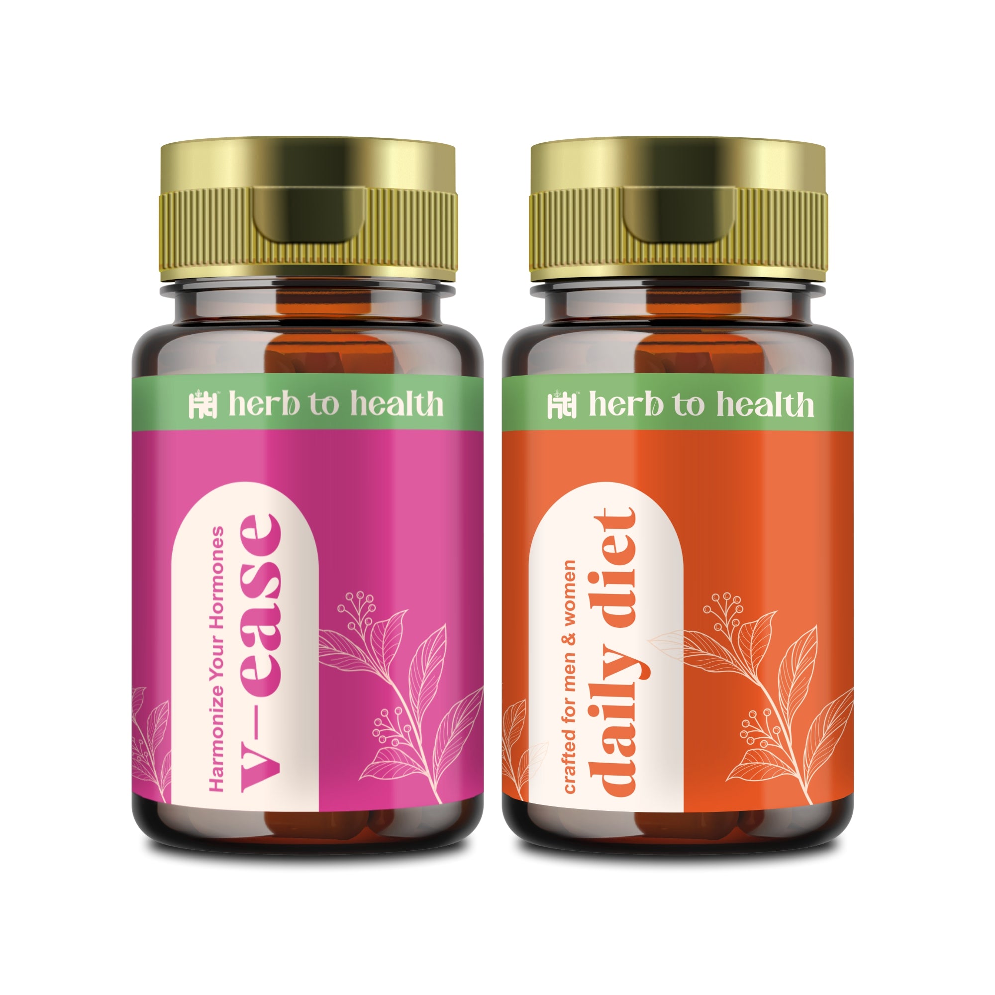 Yes. V-Ease includes herbs like Ashok Chall, Lodhar, and Ashwagandha known to support hormonal regulation and cycle balance.